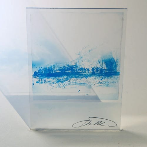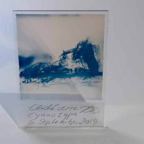 ©2020 Cliché verre printed via Cyanotype process onto glass